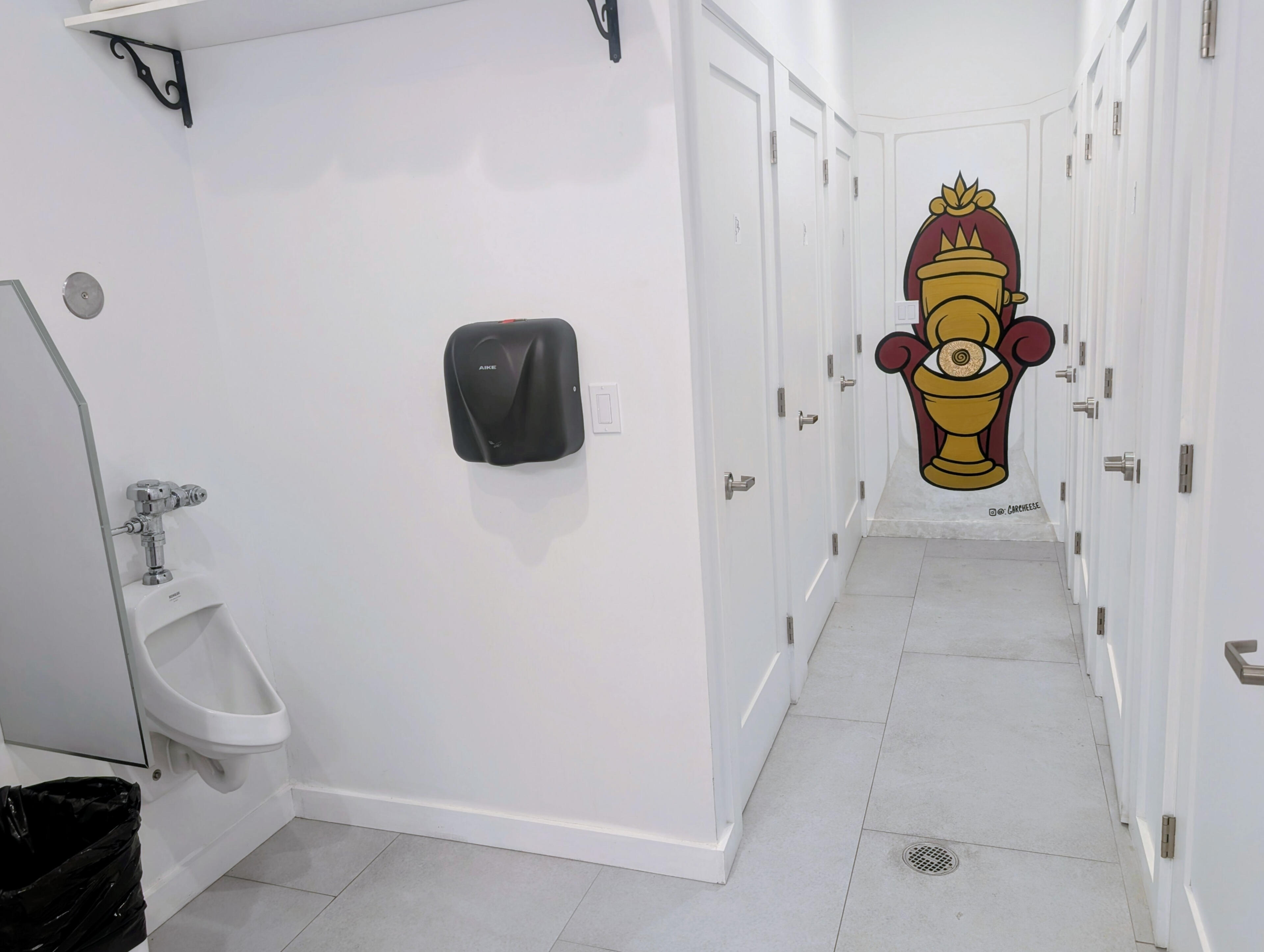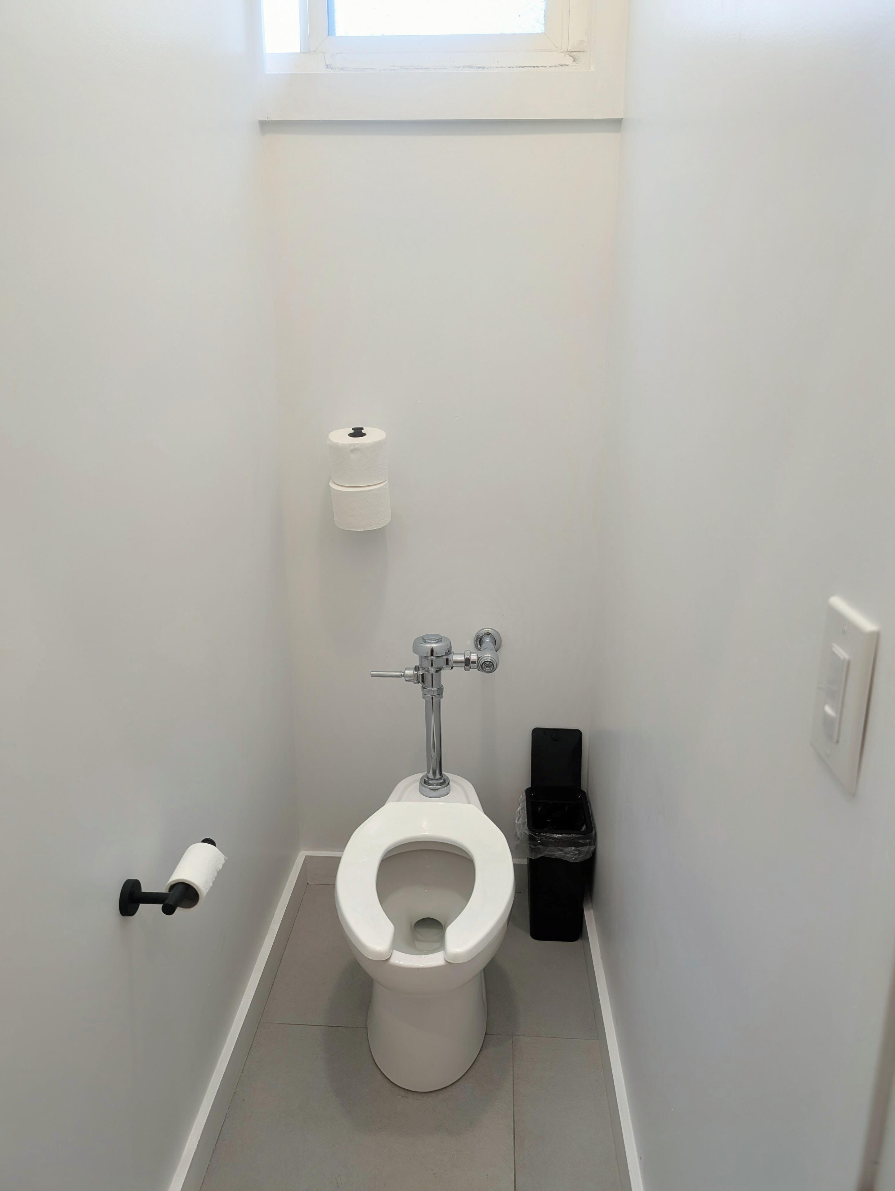 Two newly renovated meta-bathrooms, featuring 6 separate half bath toilets & showers, 2 urinals, and 1 bathtub (p.s. no, it's not crowded)