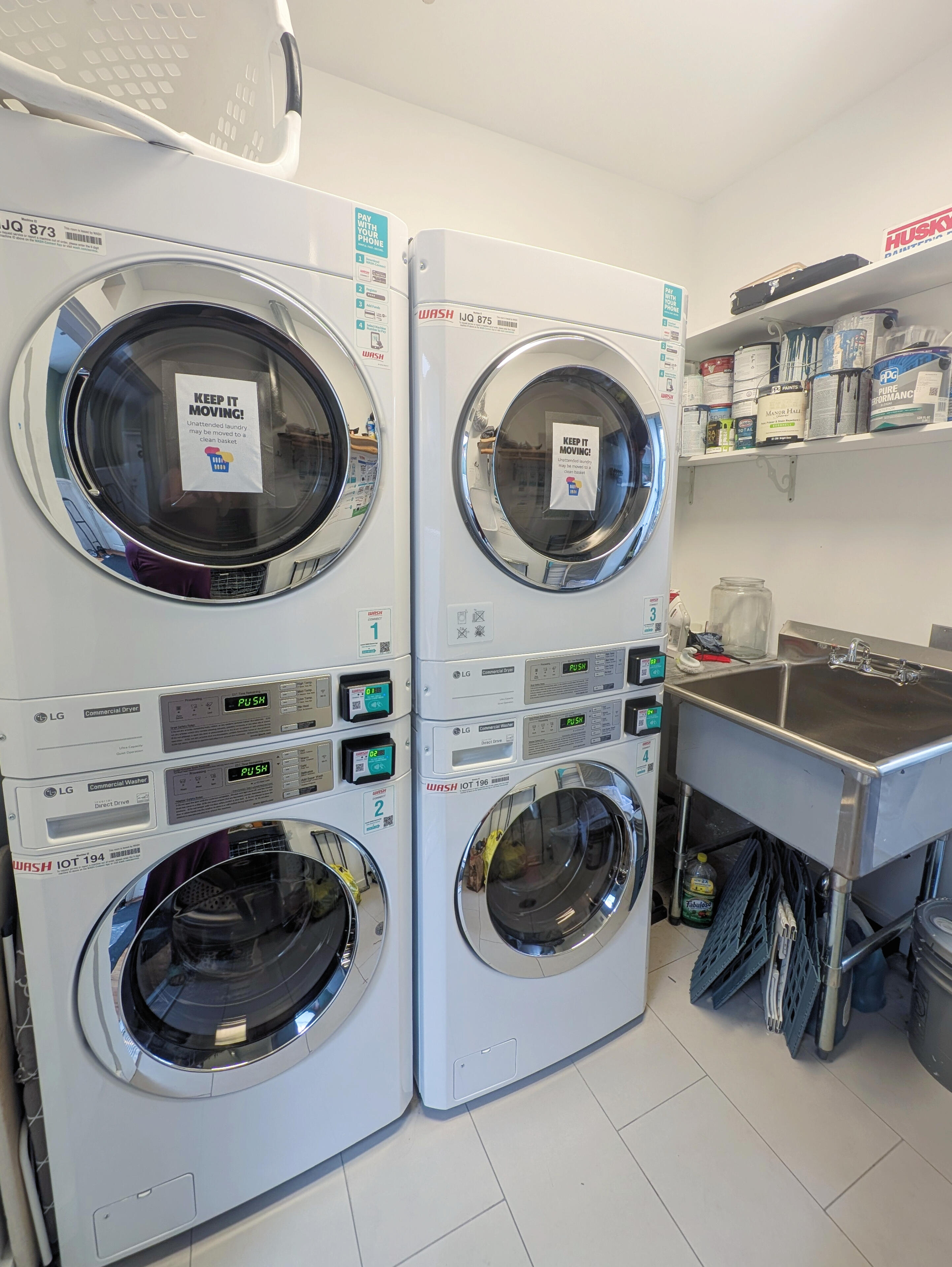 Managed laundry room ($2, Wash app) with utility sink